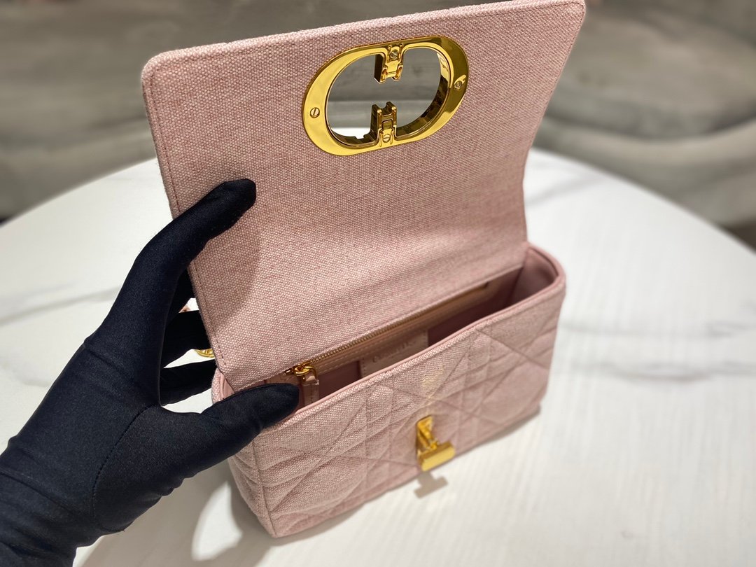 DIOR CARO handbag rose pink linen oversized rattan pattern Size:20 *12 *7cm quantity