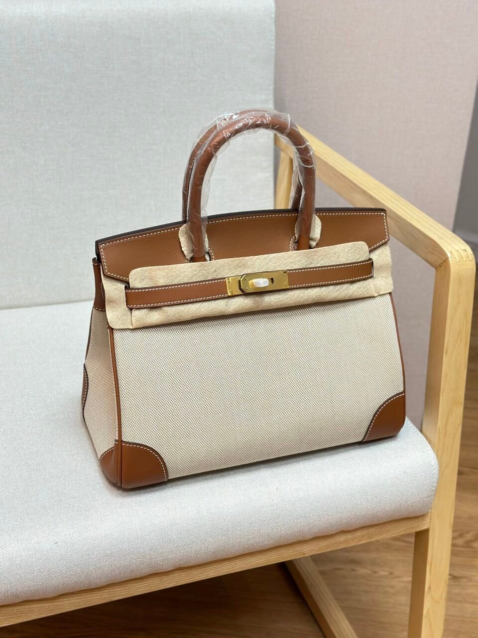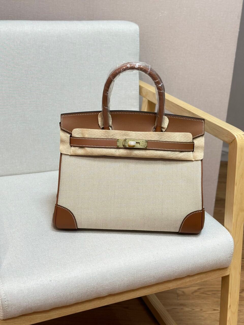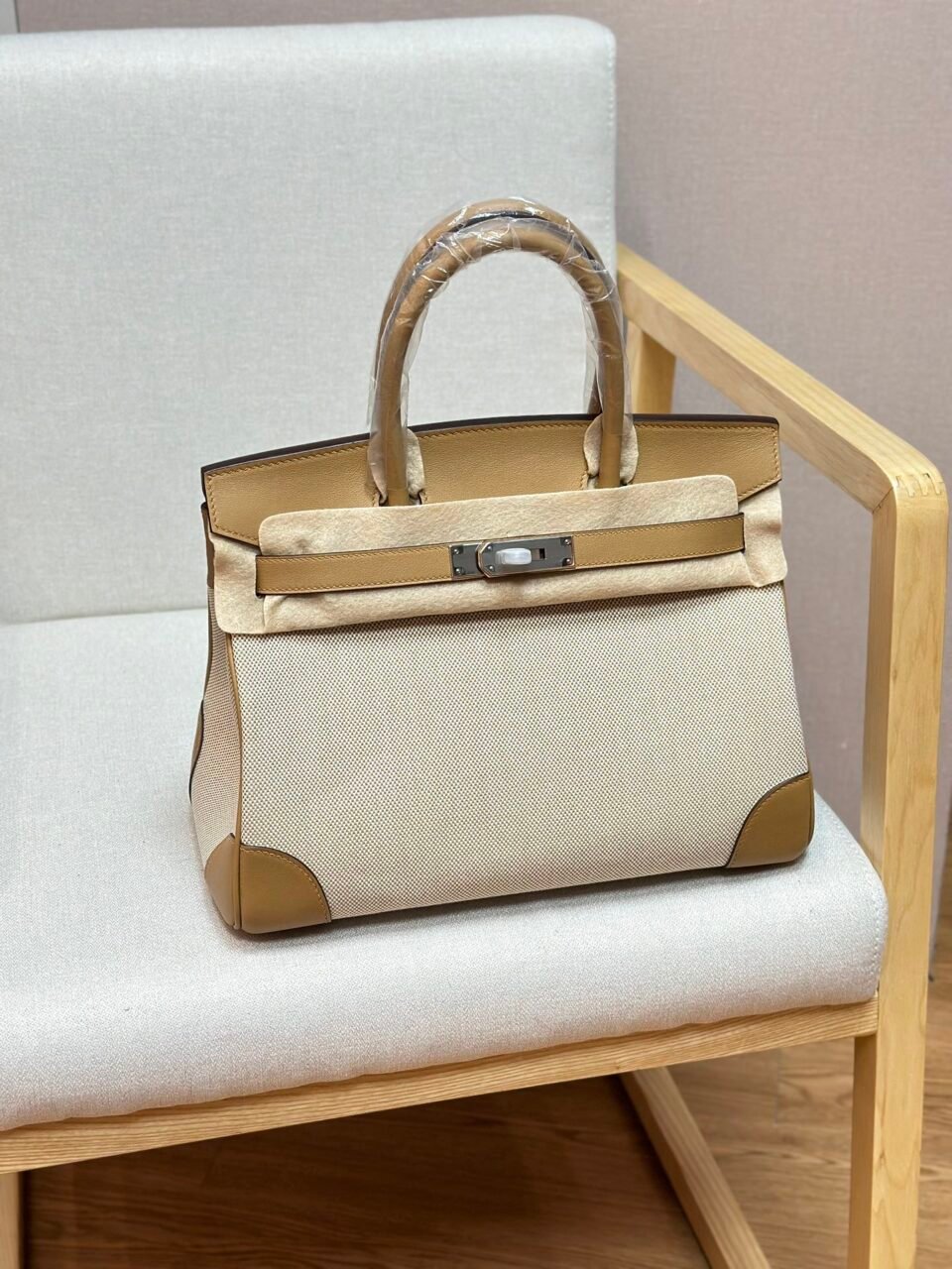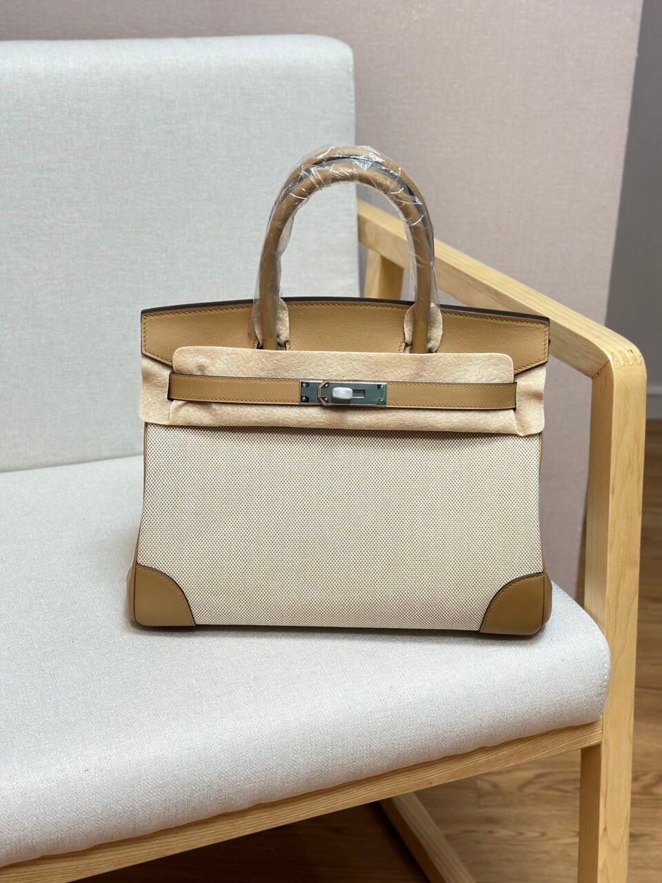 Birkin Canvas Platinum Bag 30