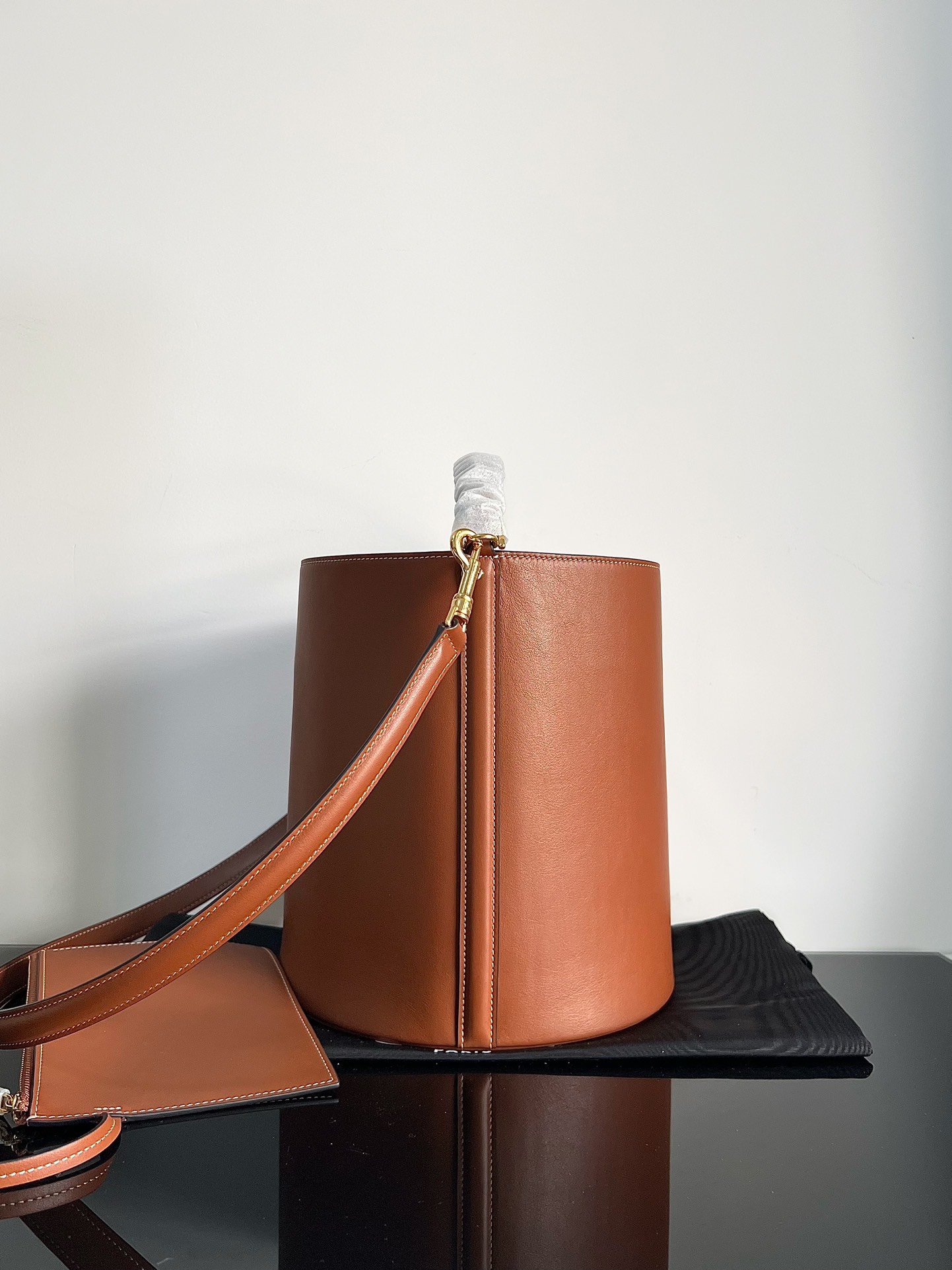 BUCKET Soft Grain Beef Leather Bucket Bag Black Size:23*24.5*23cm quantity
