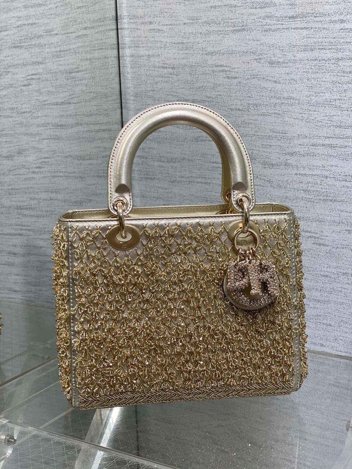 Lady Limited Edition Five Grid Beaded Crystal Pendant Embroidered Style, the Most Elegant and Noble Daifei Bag 💋 Size:24cm quantity